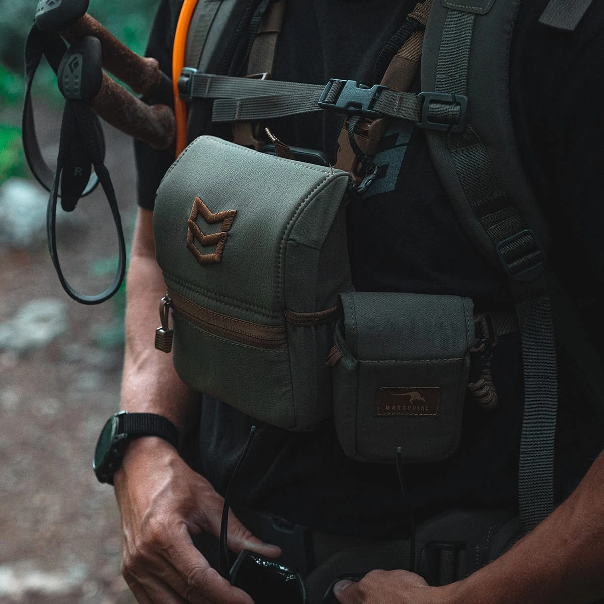 MTN OPS teamed up with Marsupial on a collaboration of their Ranger Green Enclosed Bino Harness.
