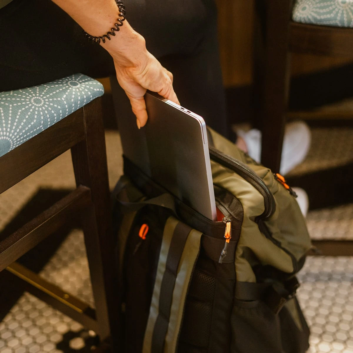This backpack is perfect for daily users as an office laptop pack or for those who travel and need/want a little larger pack to carry on a little more luggage as well as a safety compartment for your passport and important documents. And if you are looking to maximize your organization with this completely open compartment our Flash Bags to take your organization to another level.