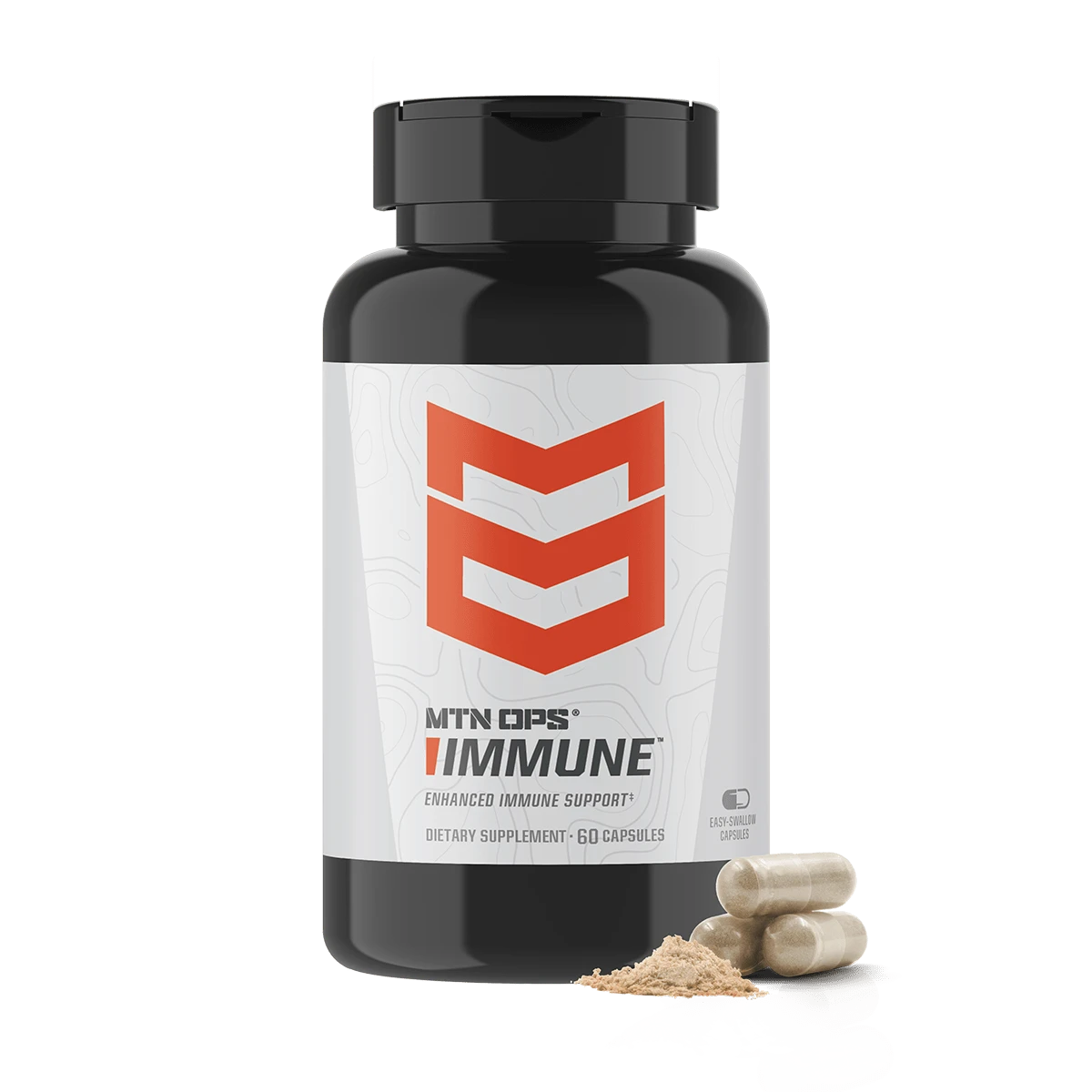 MTN OPS® IMMUNE™ Capsules deliver enhanced immune support to help your body’s natural defenses and immune response. Each serving has a quality blend of ingredients, including Vitamin C, Vitamin D, Zinc, Elderberry, Echinacea, and other powerful antioxidants which all work together to support your daily health and immune system. Each bottle comes with 60 Easy-Swallow Capsules that are easy to consume to get immune-boosting benefits! These capsules can be used for daily immune support or as needed.