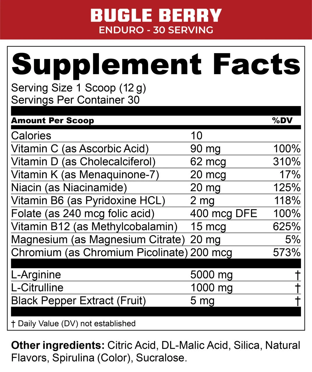 USAGE: Mix 1 serving (1 scoop) of MTN OPS ENDURO™ in 8-12 oz of water. Take up to twice per day. Best used as a non caffeinated natural energy boost and endurance product. Great as a caffeine free pre workout, cardiovascular boost for long distance/endurance athletes and oxygen boost during strenuous activities.