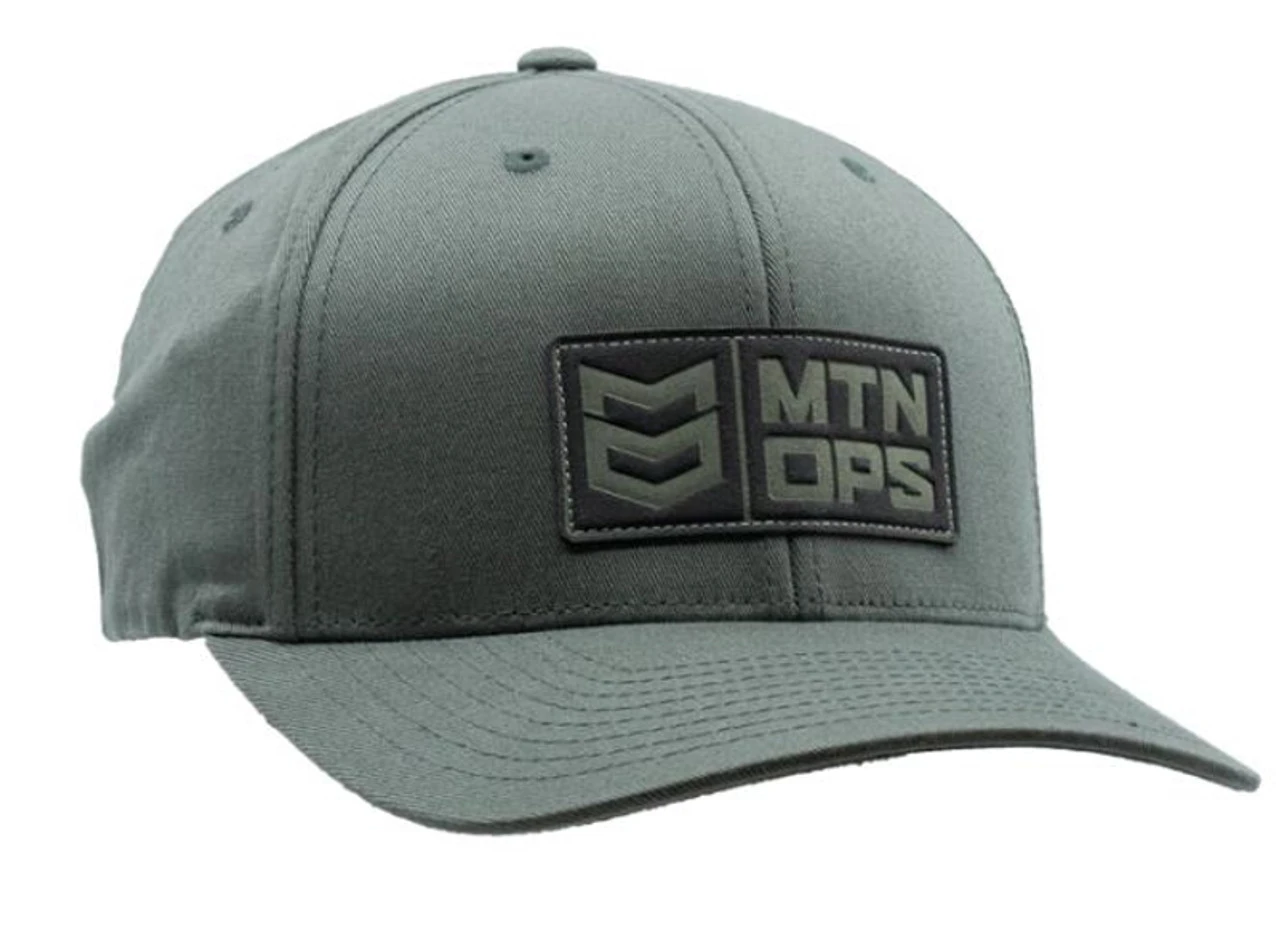 MTN Ops Men’s Stoke Hat Flexfit in Loden Gray Loden Gray Cap Structured Mid Crown Profile Woven Front Label Decoration Pre-curved Brim Flexfit Style Hat 6 Panel