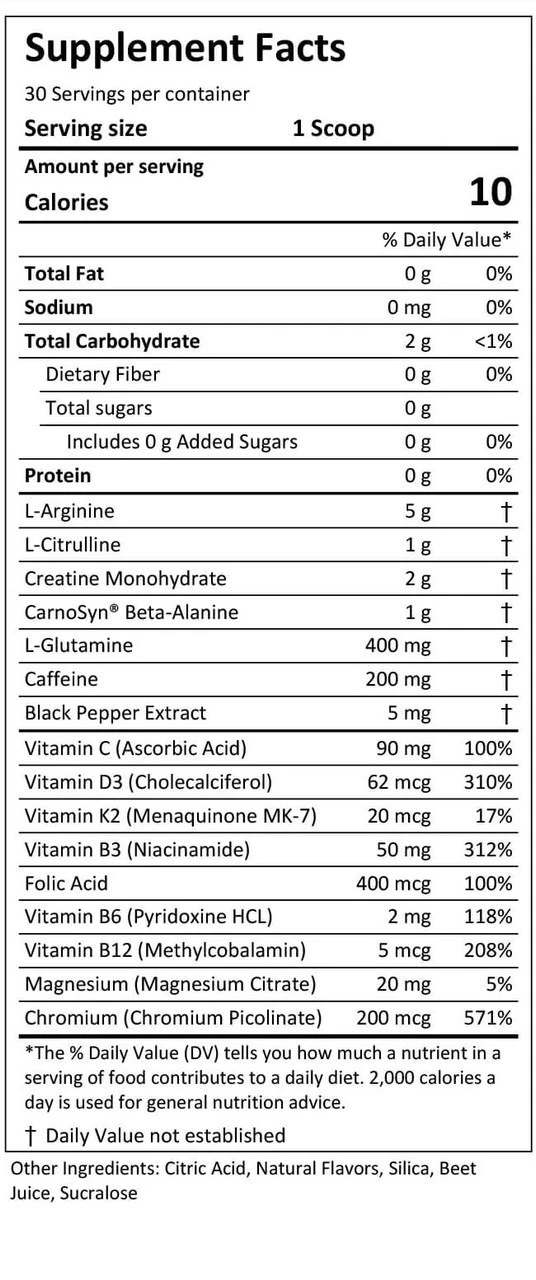 USAGE: Mix one serving (1 scoop) of MTN OPS YETI™ in 10-16 oz of water. As a PRE-WORKOUT, take one serving 30 min before workout of physical activity.