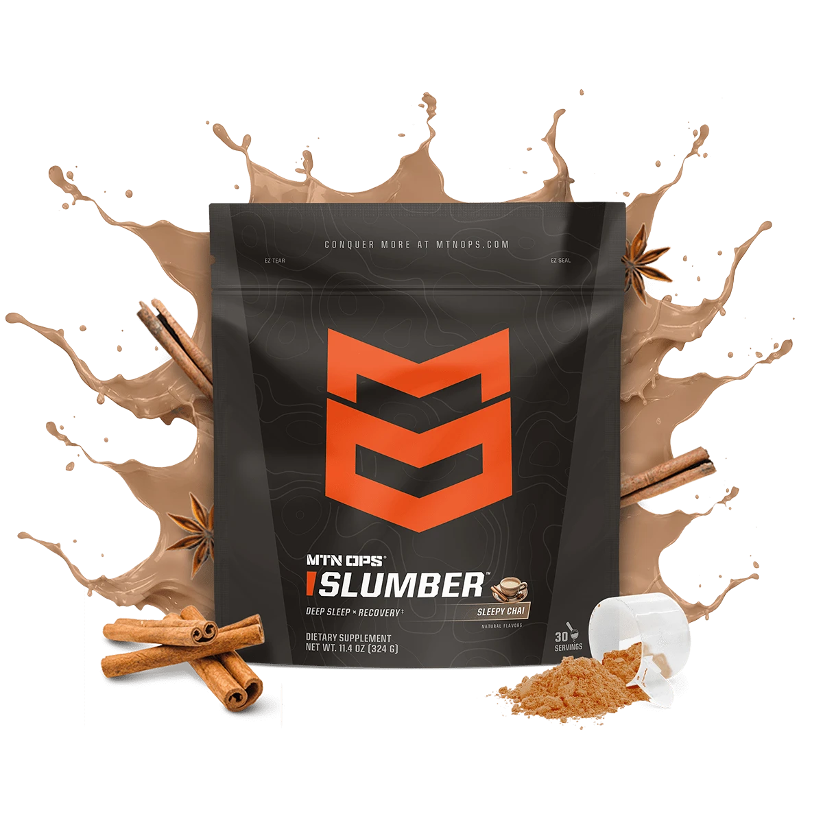 DIRECTIONS: 30-60 minutes prior to bed, mix one scoop of MTN OPS Slumber™. MTN OPS Slumber™ can be consumed cold, but is best when mixed with hot water. Stir when using hot water or shake until blended with cold water.