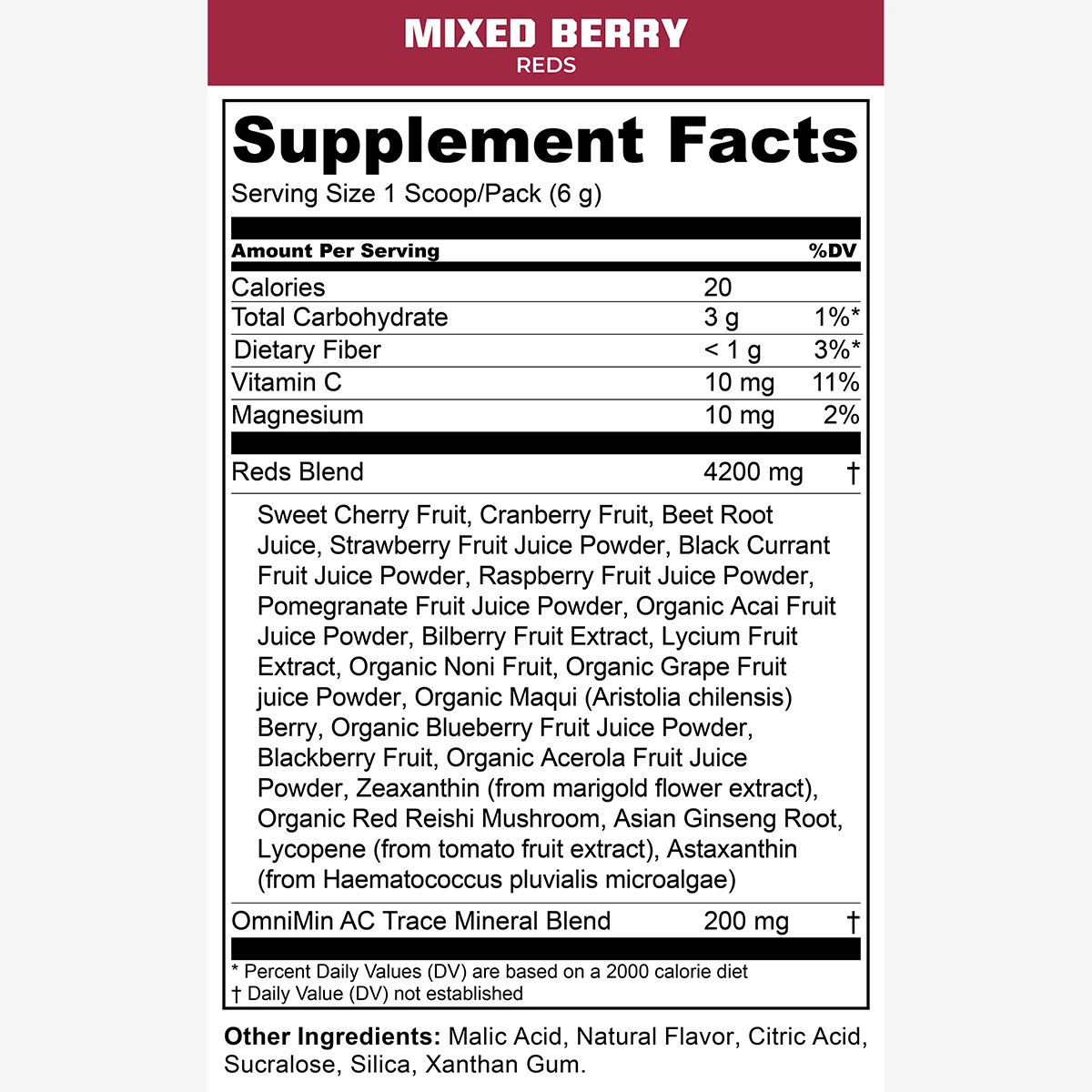 SUPER REDS is as vibrant in function as its color and flavor with the antioxidant power and phytonutrient benefits from a wide variety of fruits and vegetables. SUPER REDS are a convenient and incredibly delicious solution to boost and support your immune system with antioxidants to help fight free radicals.
