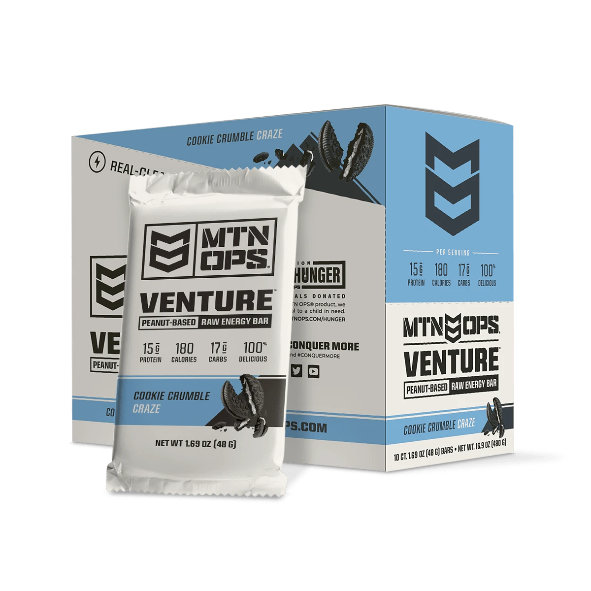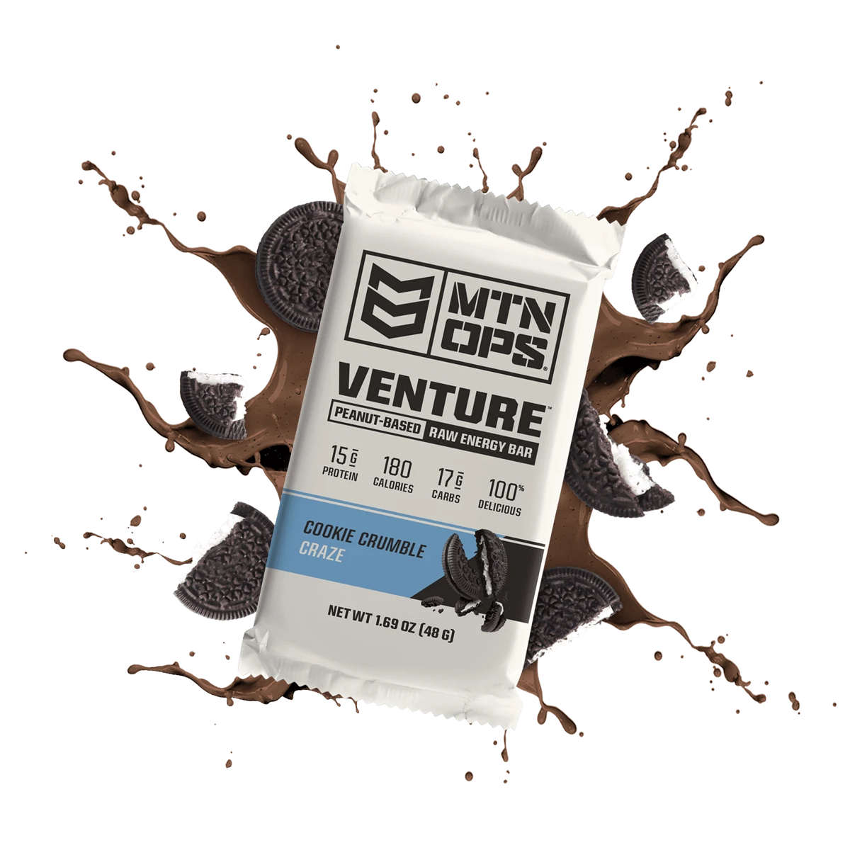 MTN OPS Venture Bars are your everyday, on-the-go energy bar that you can easily throw into your bag or purse as you walk out the door. These peanut-based raw energy bars don’t melt, feature 15 grams of protein, and are less than 200 calories. These are truly meant for everyone from the outdoor adventurer to the busy office worker